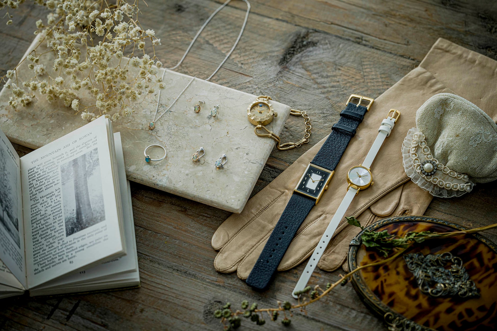 金沢の時計工房のアートディレクター・牛島孝さんに作っていただいた5つの時計。金沢の伝統文化と日本古来の技法を合わせたこの時計は、日本画家としても活躍する牛島さんならではの逸品です。文字盤は、天然の鉱物を砕いて作った「岩絵具」で着彩。岩絵具は日本画の画材として使われており、その起源は飛鳥時代にまで遡ると言われています。