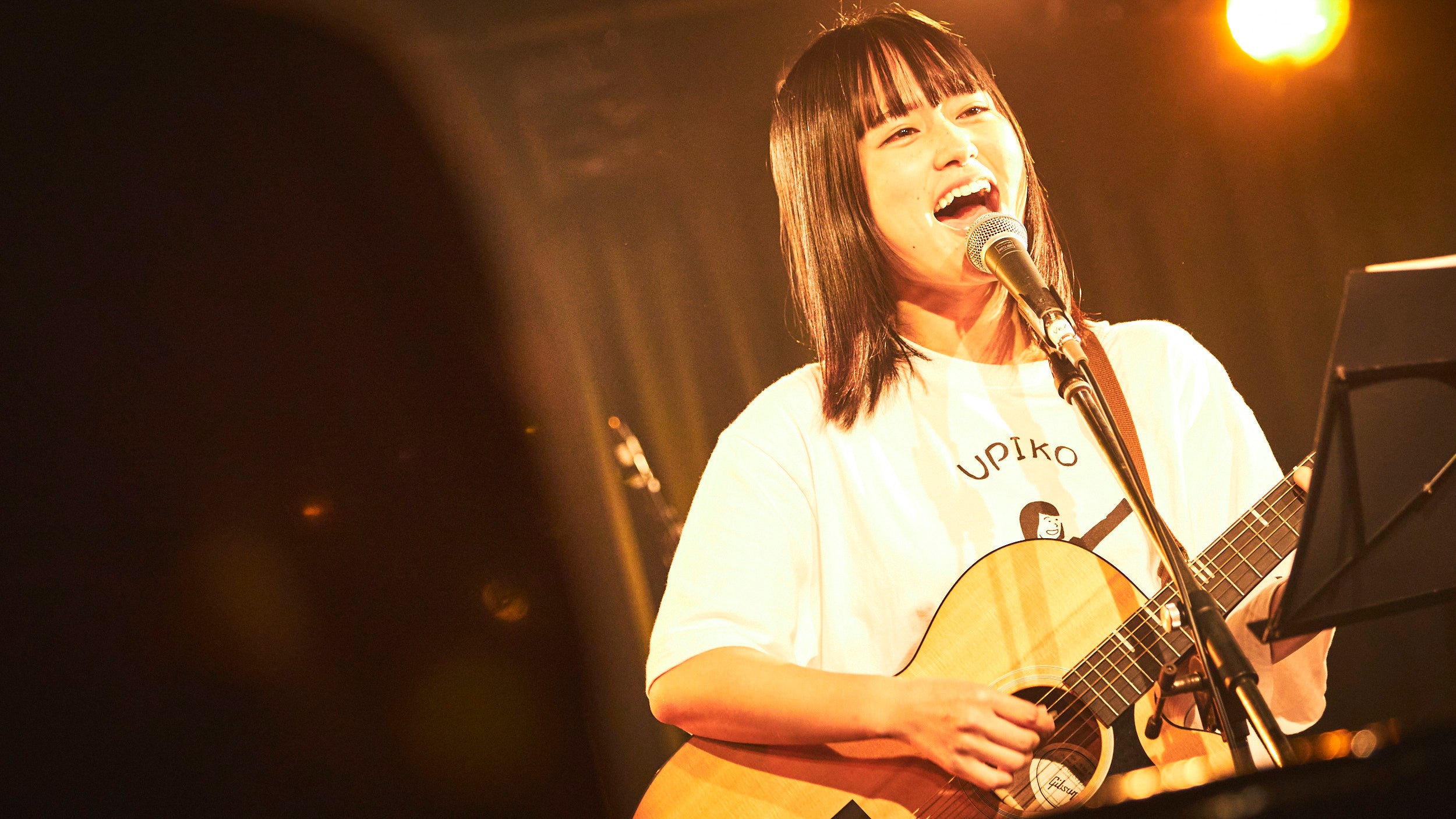 トレードマークのギターにうぴT(オリジナルTシャツ)姿で登場し、THE HIGH-LOWSの「日曜日よりの使者」が始まると、会場は一瞬静まり返り、魂に語りかけるようなうぴ子さんに耳を傾け、サビに近づくとともに体を大きく揺らすお客さんも増え、会場の緊張感が解けていった。
