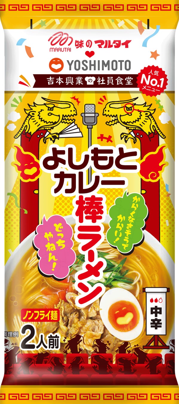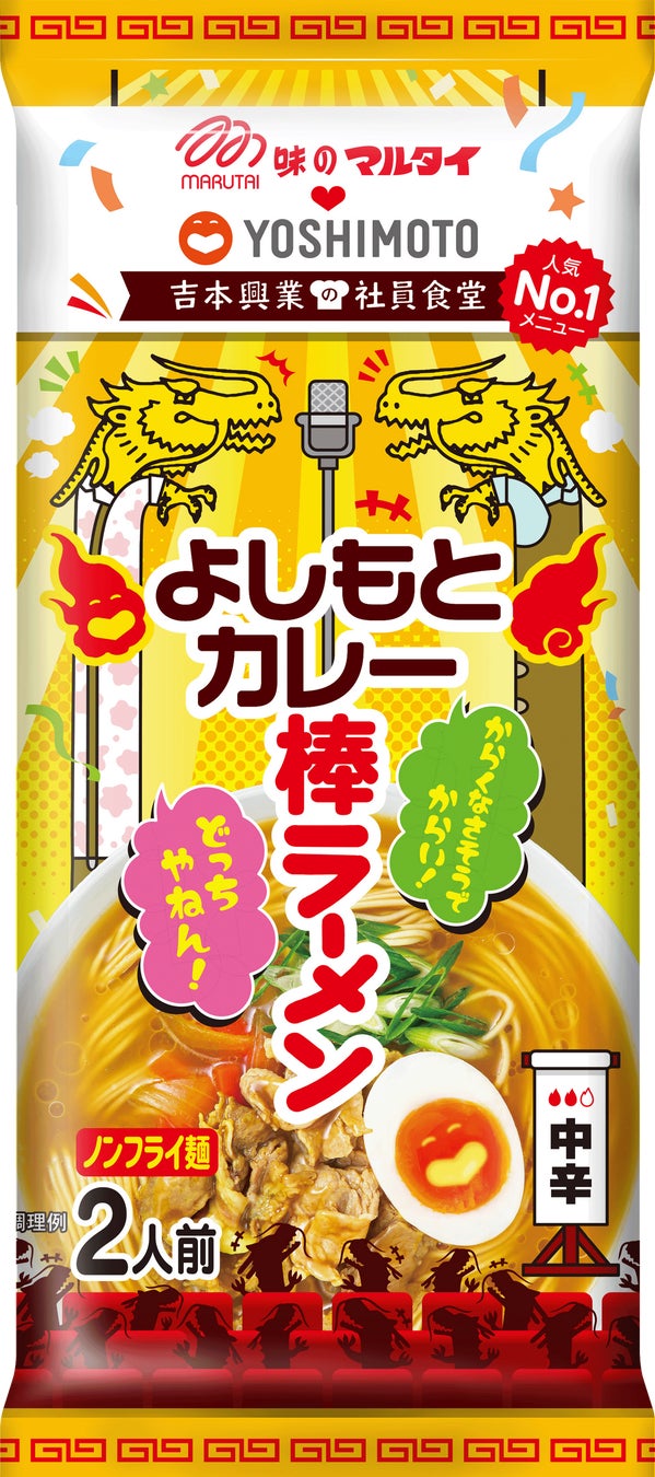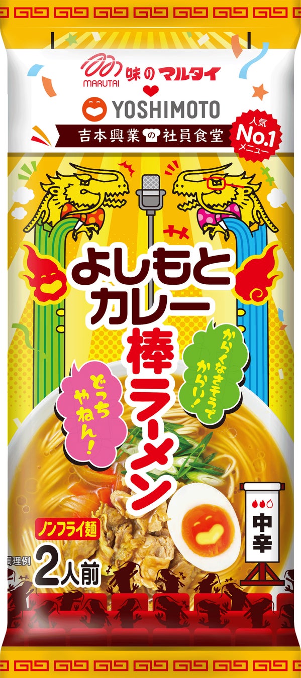 社員食堂人気NO.1メニュー「よしもとカレー」が棒ラーメンに!棒ラーメンでおなじみの「マルタイ」と「吉本興業」のコラボ第2弾!吉本興業の社員食堂「よしもとカレー棒ラーメン」 3月24日(月)発売