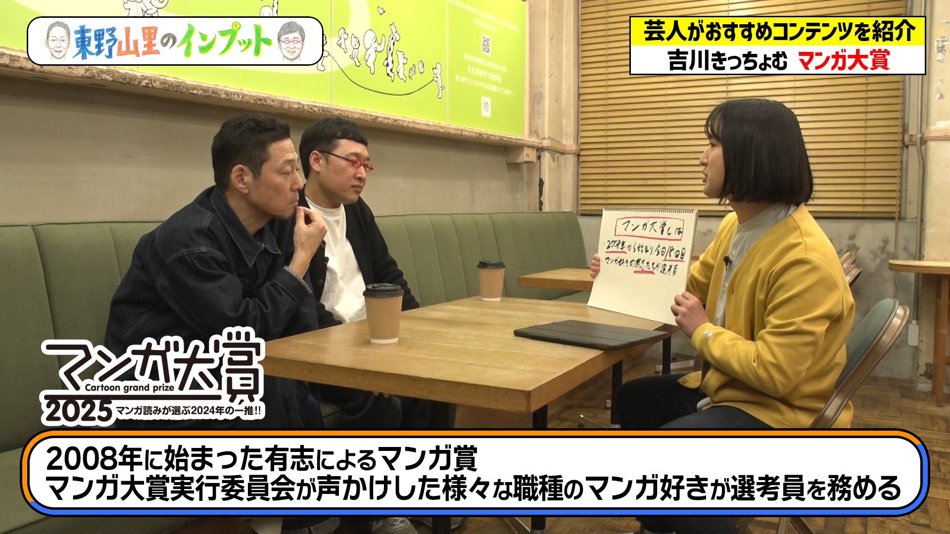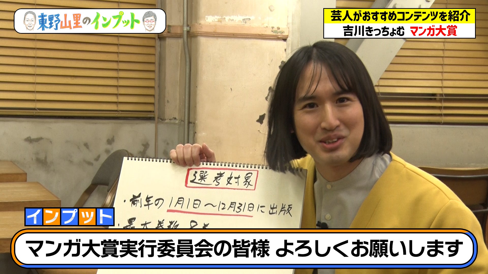 「#40」のテーマは、東野も山里も楽しみにしていた「マンガ大賞」で、プレゼンターは、マンガ大好き芸人の吉川きっちょむです。