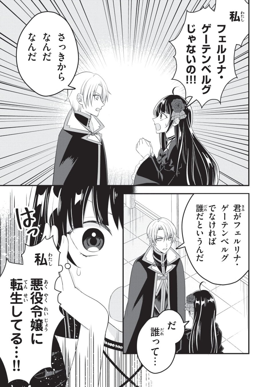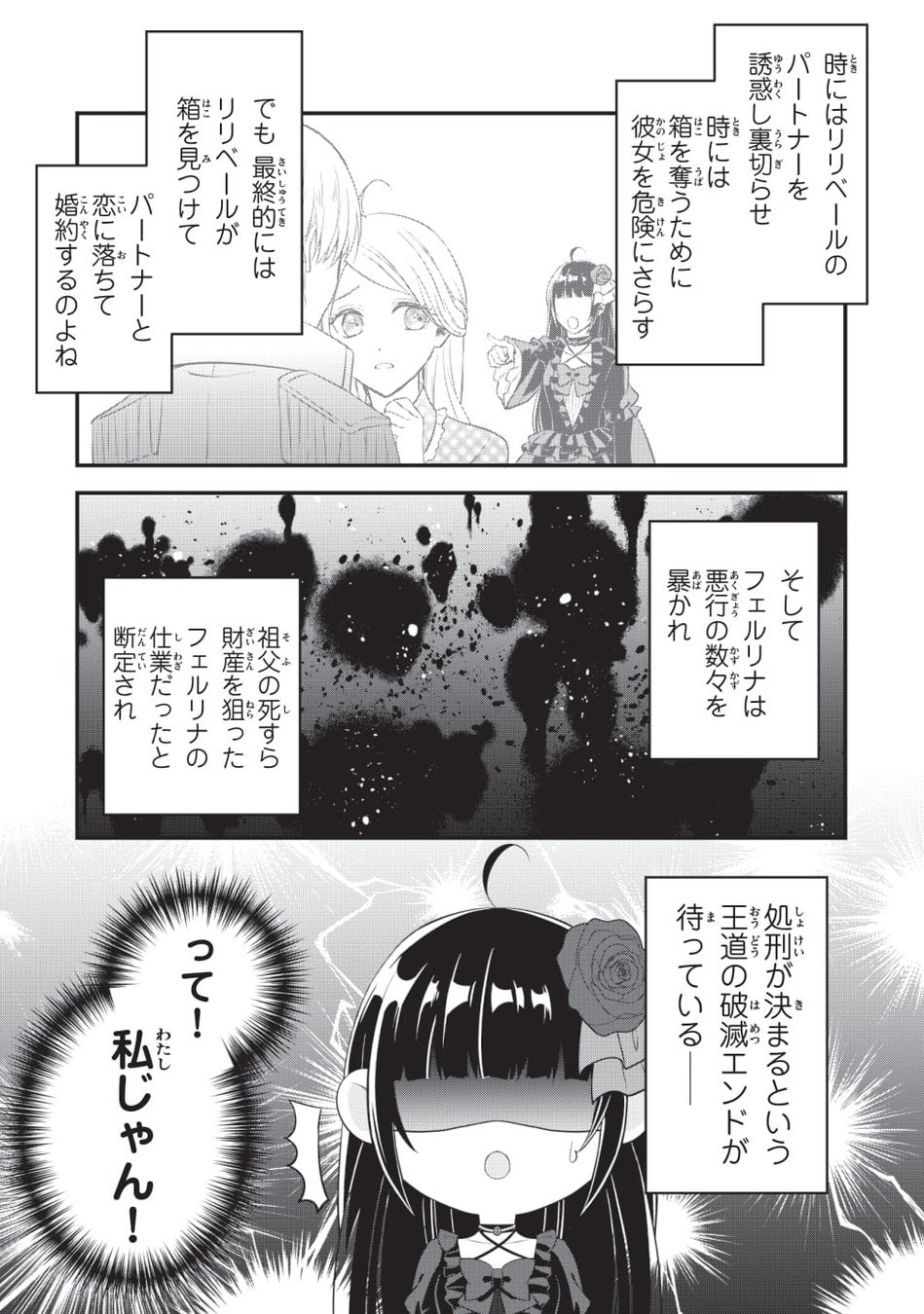 この作品の見どころは、処刑前夜の悪役令嬢フェルリナに転生してしまった主人公と、