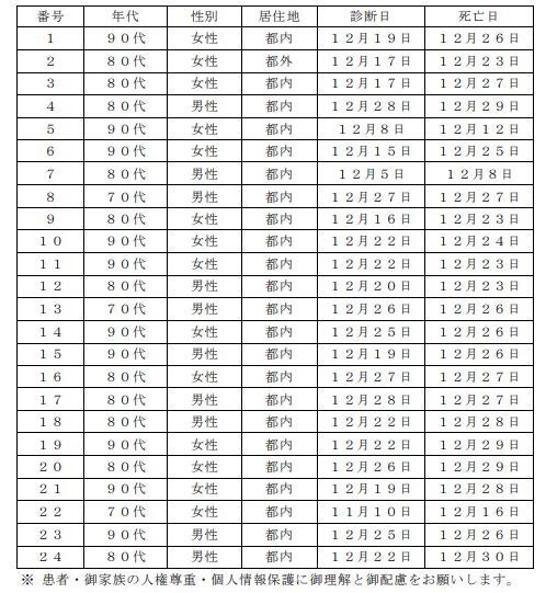 都内で新型コロナウイルスに感染した方が死亡されましたのでお知らせします。