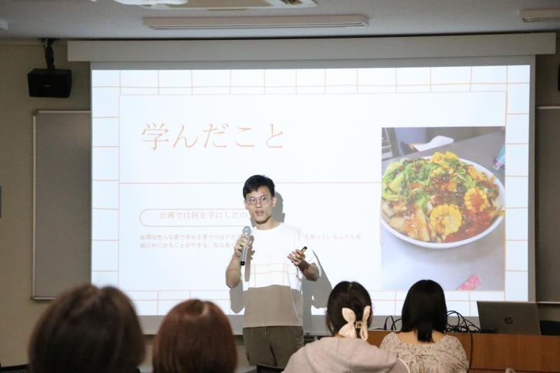 留学成果報告会では、8人の学生が、それぞれの派遣先大学での学びや学生生活について発表しました。留学へ行くまでの具体的な準備や現地での授業、寮生活、物価についてなど、実際の体験が詳しく紹介されました。