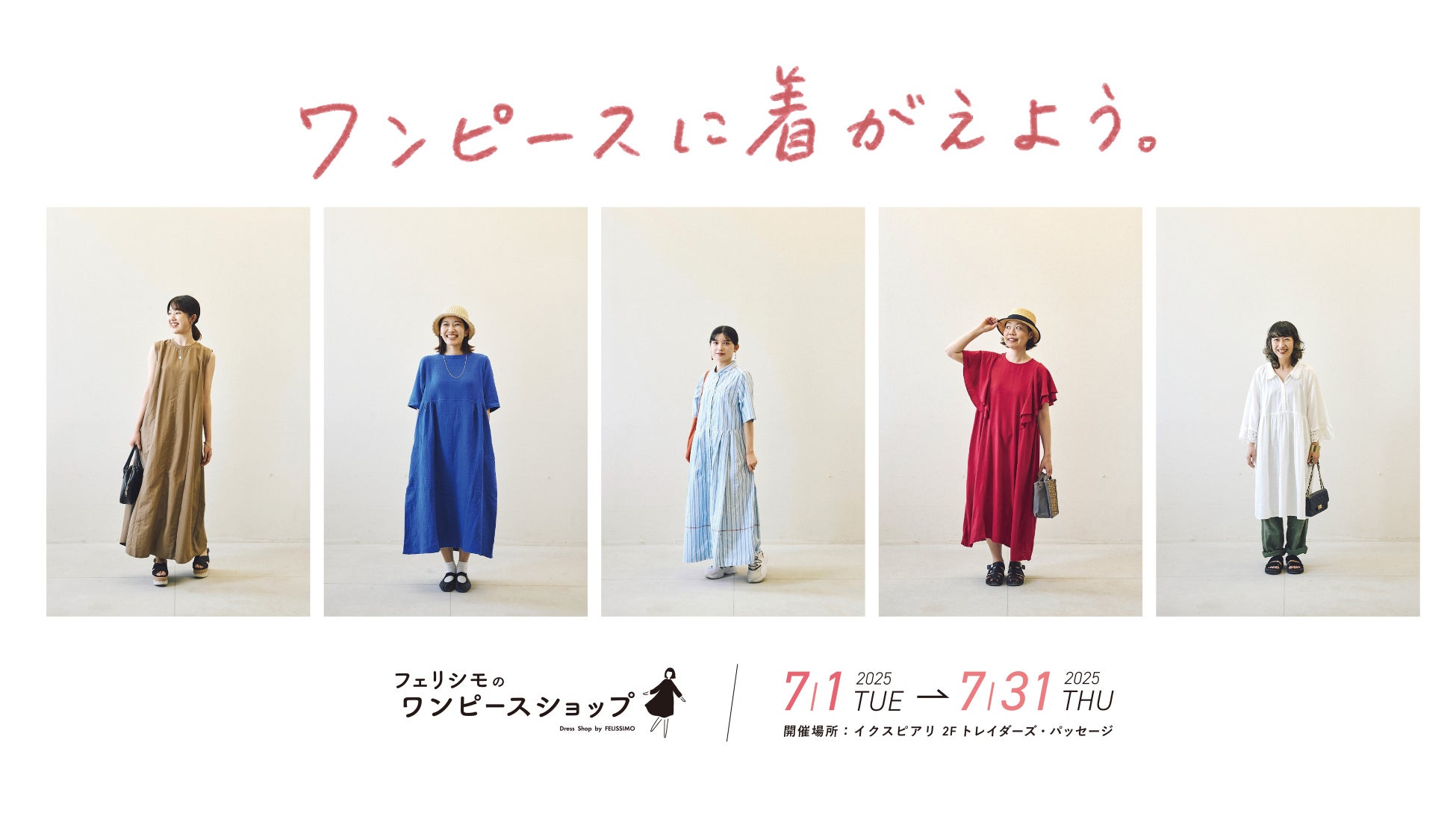 【フェリシモのワンピースショップ】総額1,000円オフのキャンペーンも! 500種以上から厳選した多様なラインナップ。7月1日(火)から1か月間、千葉県浦安市舞浜の「イクスピアリ®」にて開催