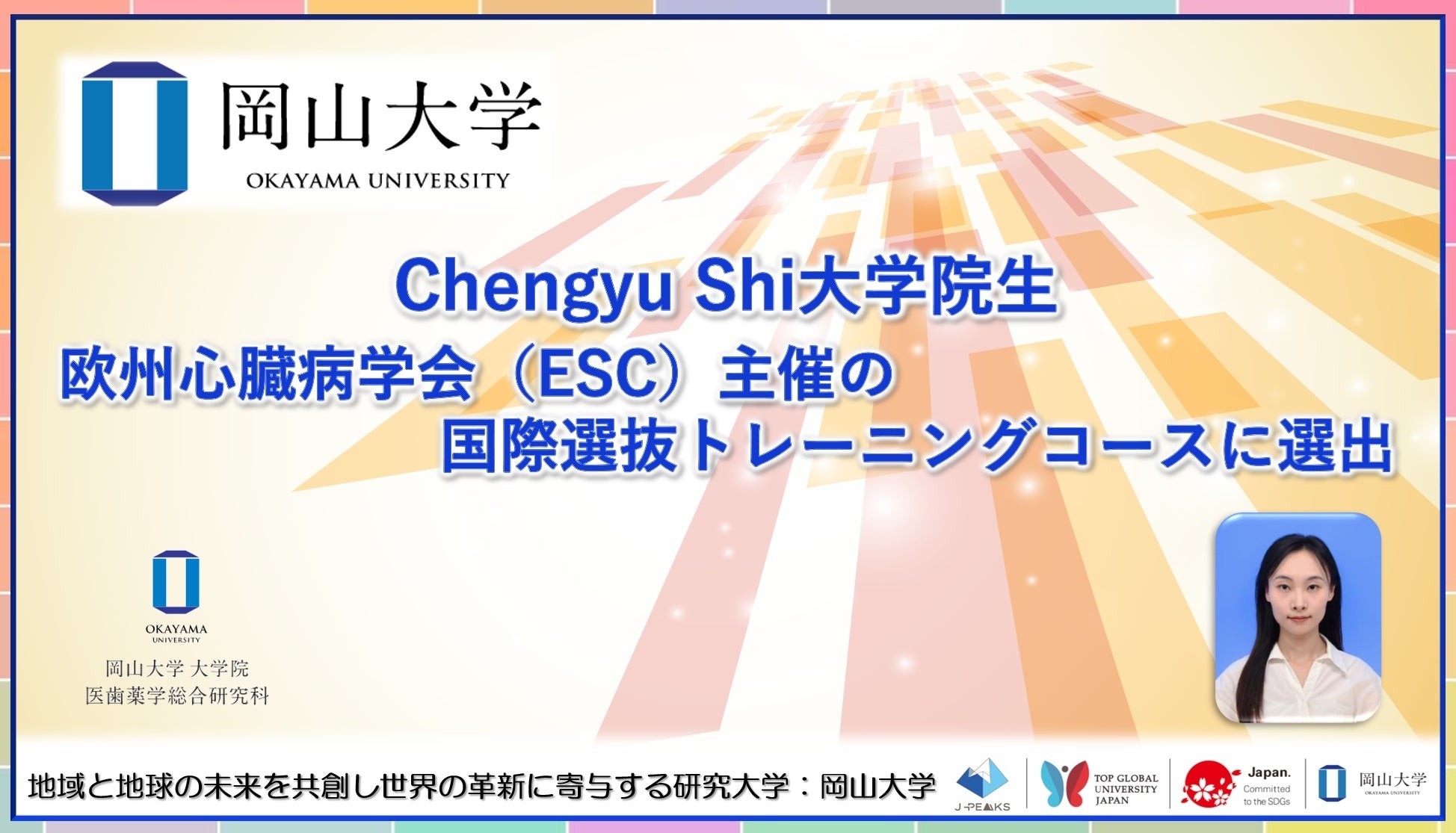 【岡山大学】Chengyu Shi大学院生が欧州心臓病学会(ESC)主催の国際選抜トレーニングコースに選出