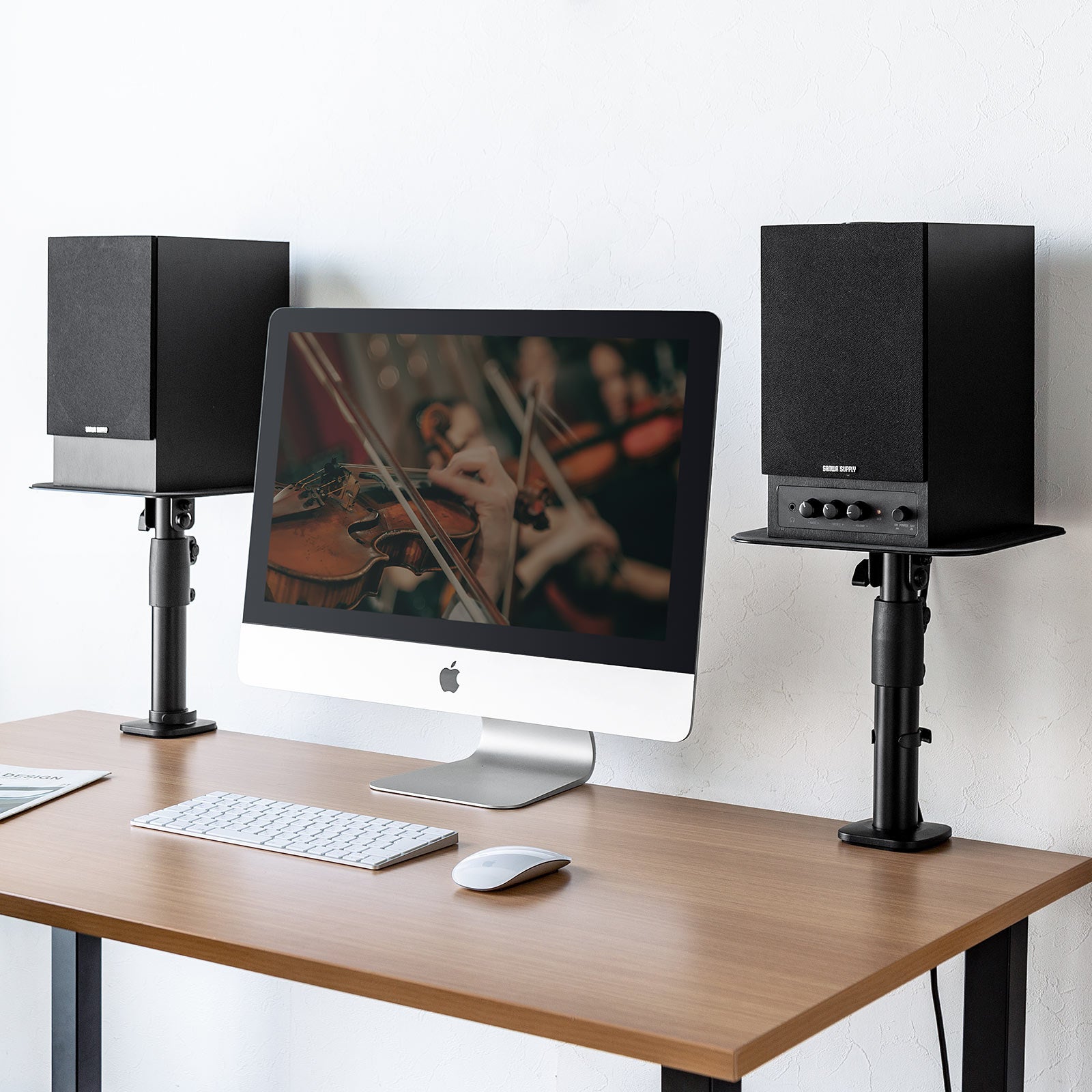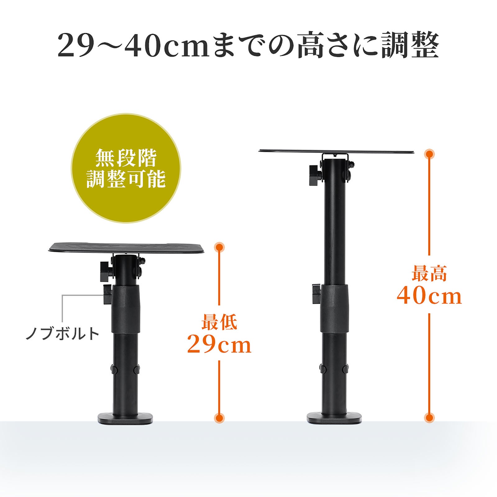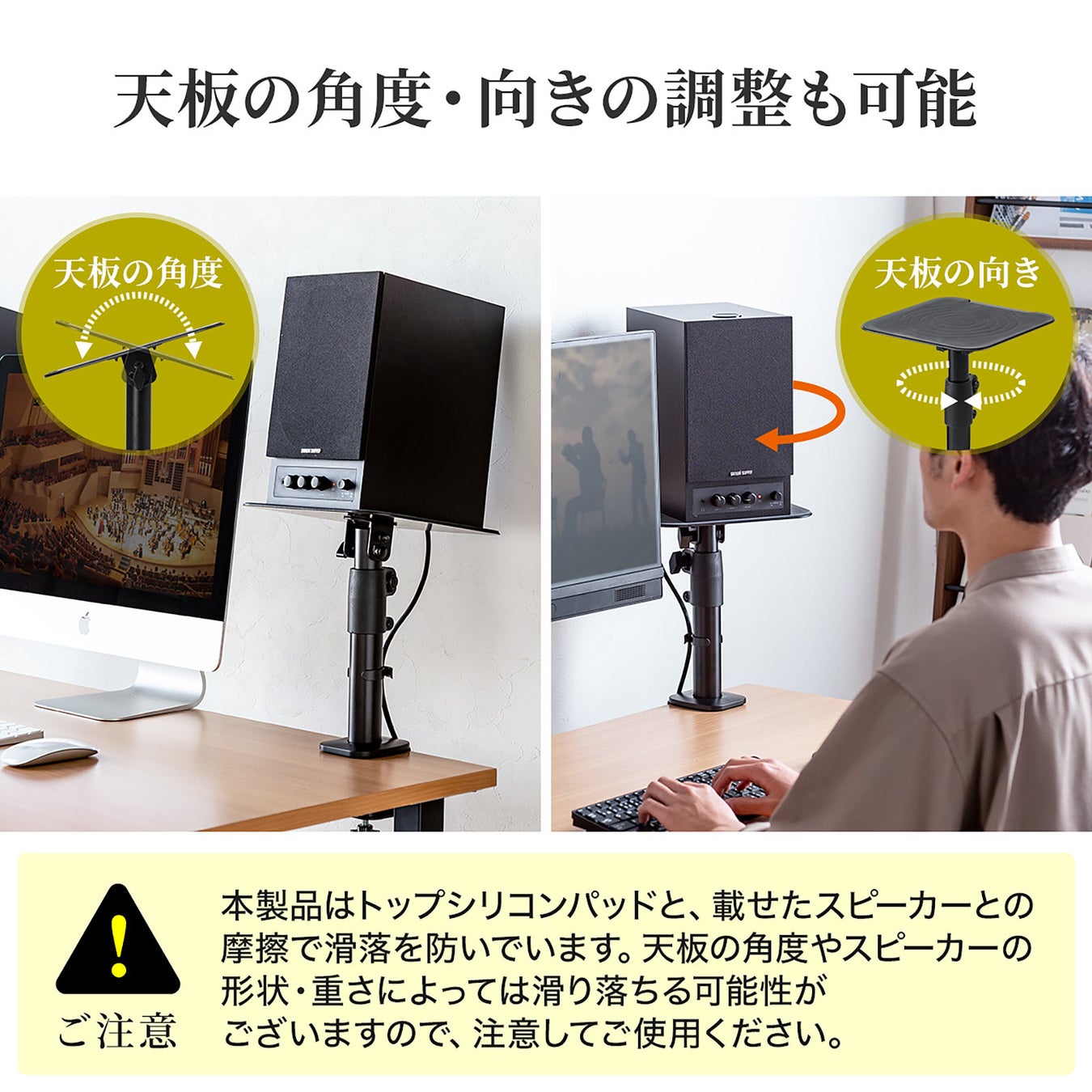 本製品(100-SPSTN01)は、スピーカーの高さと角度を調整できる卓上タイプのスピーカースタンドです。