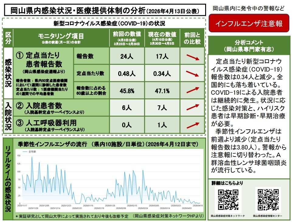 【岡山大学】岡山県内の感染状況・医療提供体制の分析について(2026年4月13日現在)