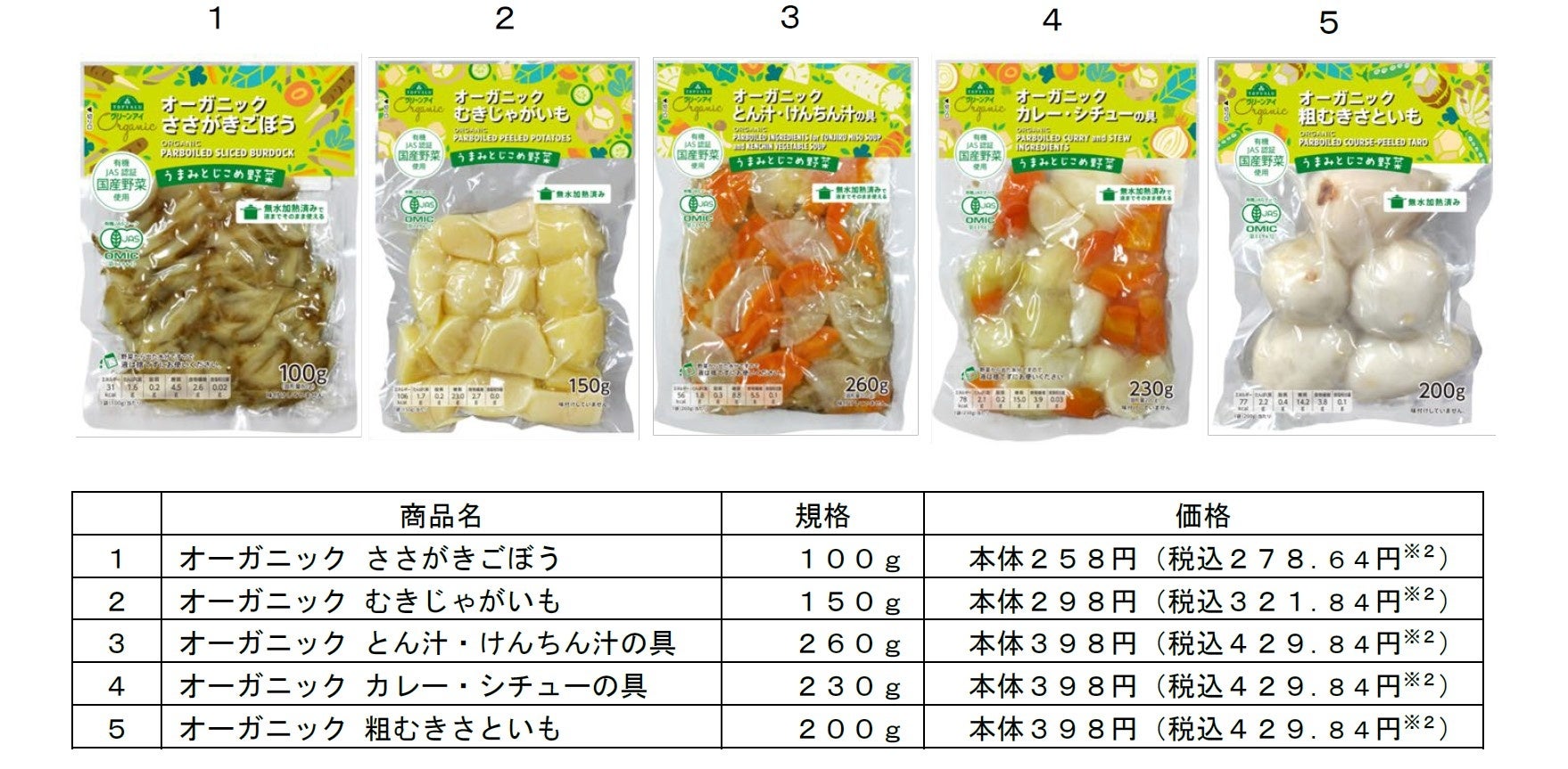 【トップバリュ グリーンアイオーガニック うまみとじこめ野菜 ラインアップ】