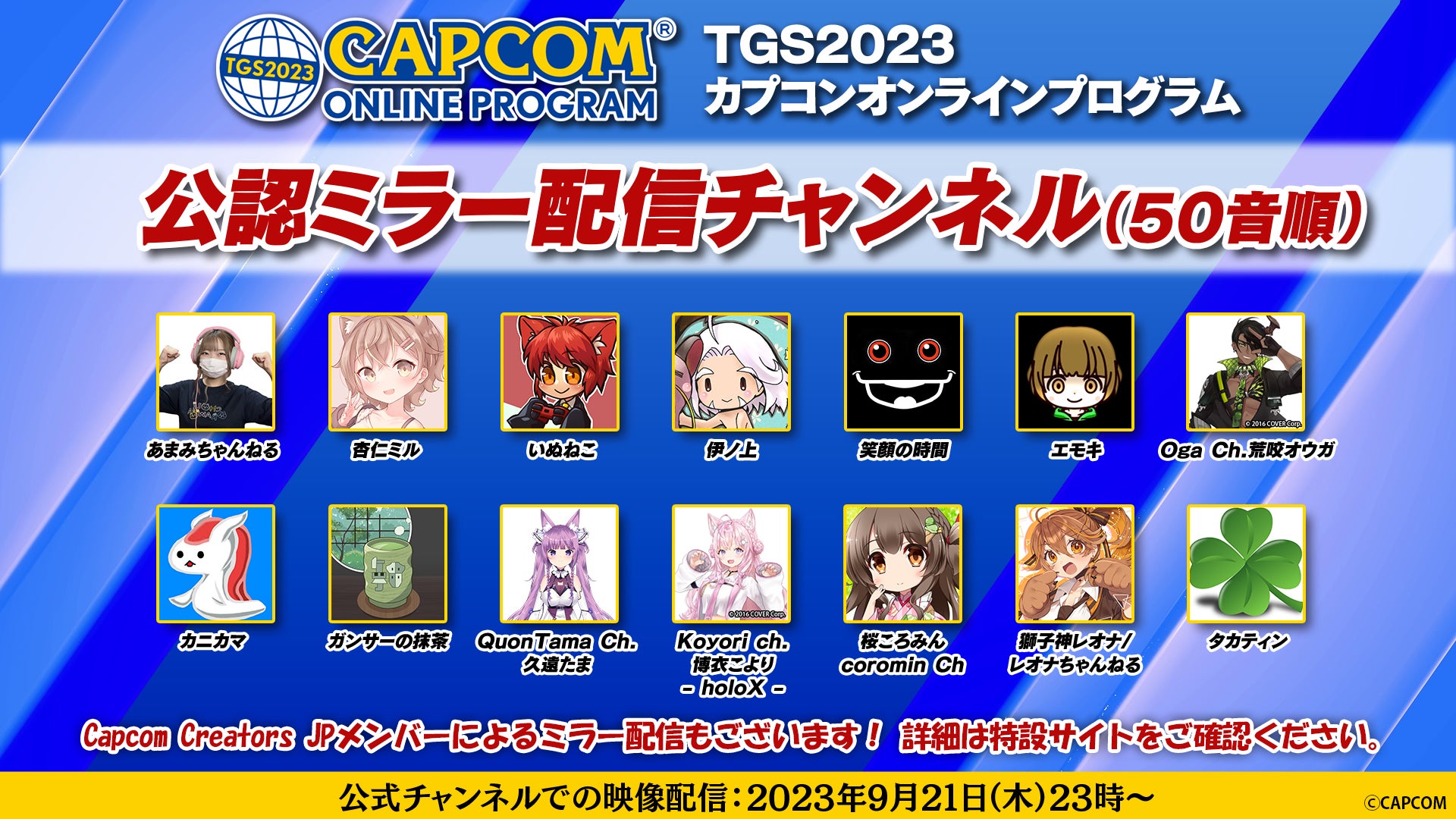『TGS2023 カプコンオンラインプログラム』公認ミラー配信チャンネル(50音順)