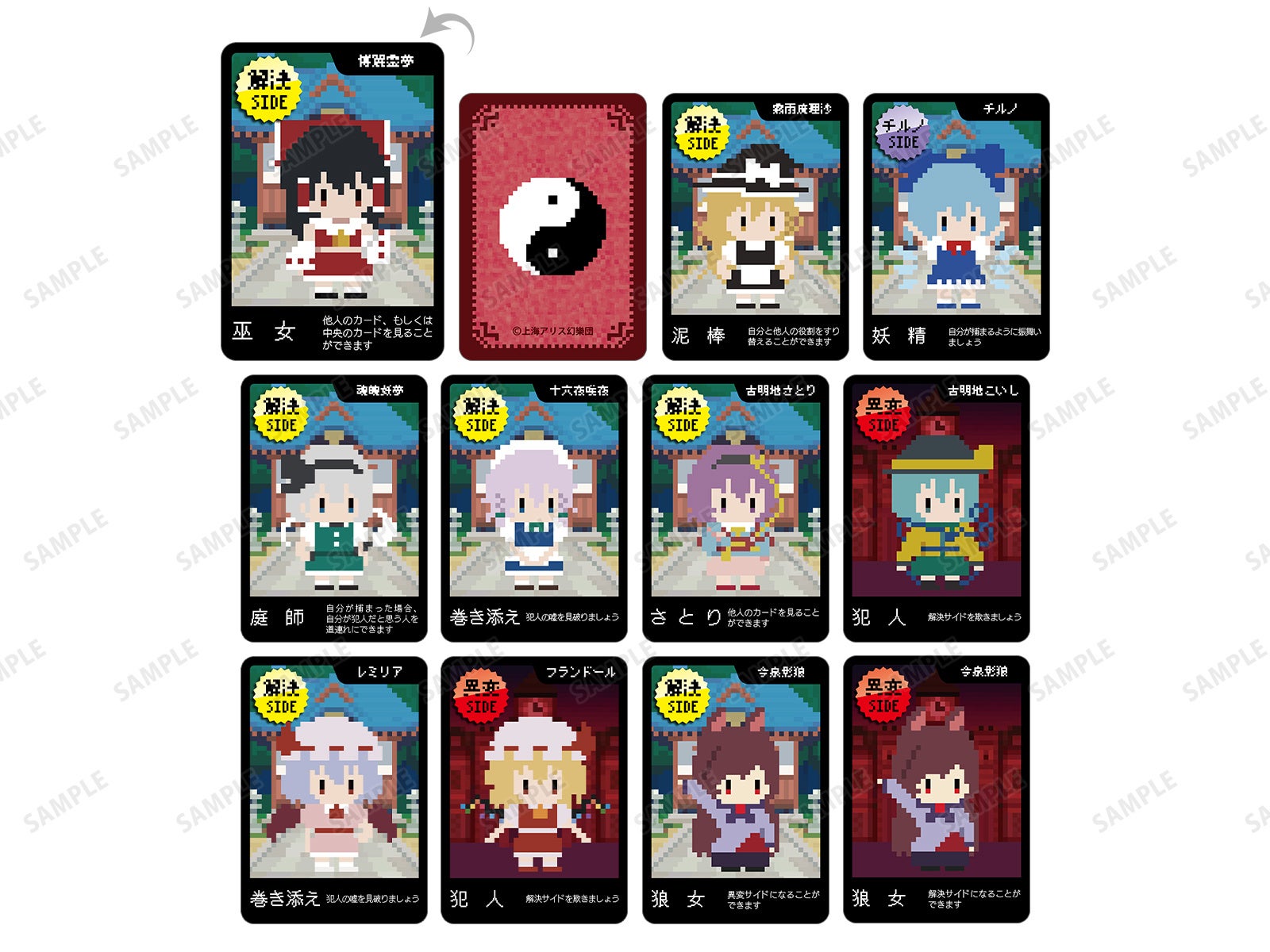 ※ECサイト「AMNIBUS」、「ARMABIANCA」では、BOX購入特典として「古明地こいし&フランドール・スカーレット アクリルスタンド(ワンナイト人狼コラボドット絵ver.) AMNIBUS&ARMABIANCA限定特典」を予定しております。