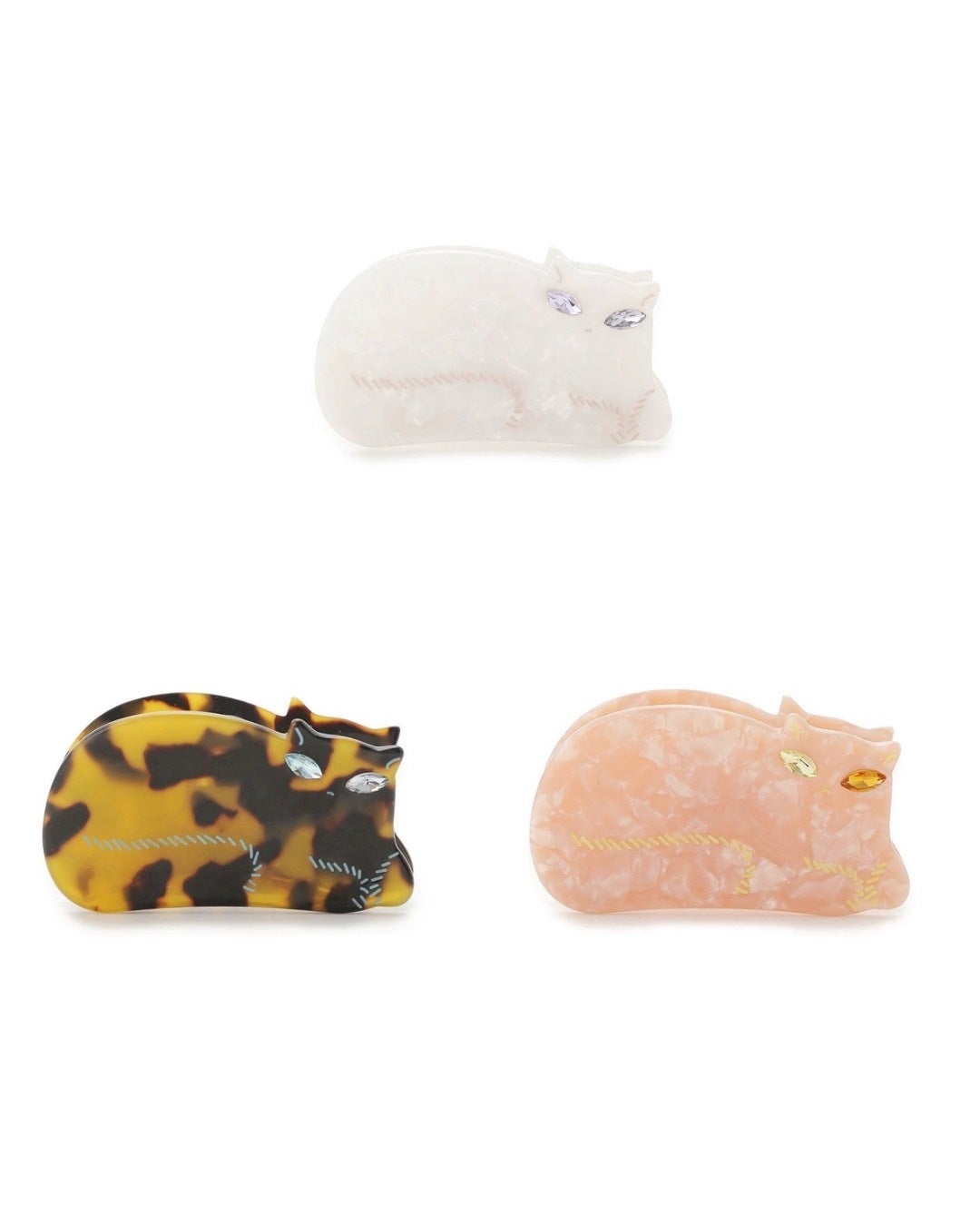 オリジナルの猫イラストをヘアクリップに仕立てたアイテム。