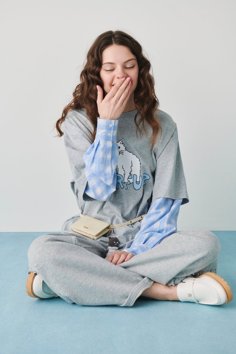すまし顔の猫の表情がどこかユーモラスな印象を生む1着です。