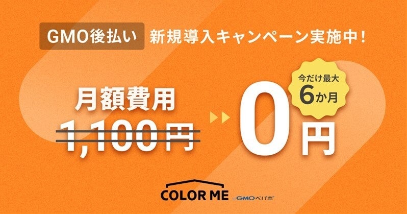 ネットショップ作成サービス「カラーミーショップbyGMOペパボ」で、「GMO後払い」の月額利用料が最大6か月無料!【GMOペパボ】