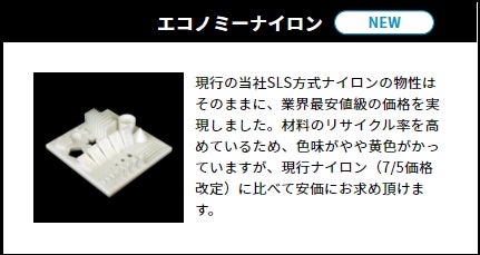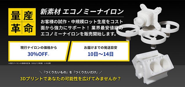 合同会社DMM.com(本社:東京都港区、会長 兼 CEO 亀山敬司、以下DMM )は、DMM.make 3Dプリント事業において、業界最安水準価格を実現したエコノミーナイロンの取り扱いを開始いたします。