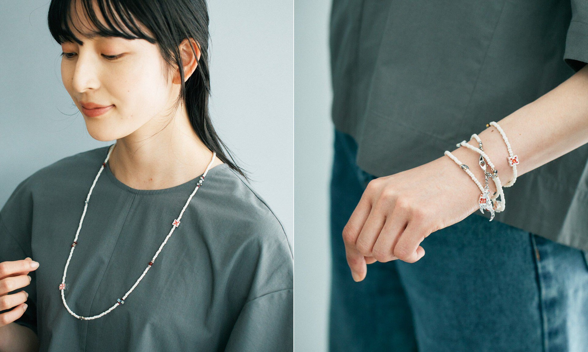 ネックレスとして装着すれば、シンプルな装いも華やかに。手首に幾重に巻けば印象的なブレスレットの完成です。