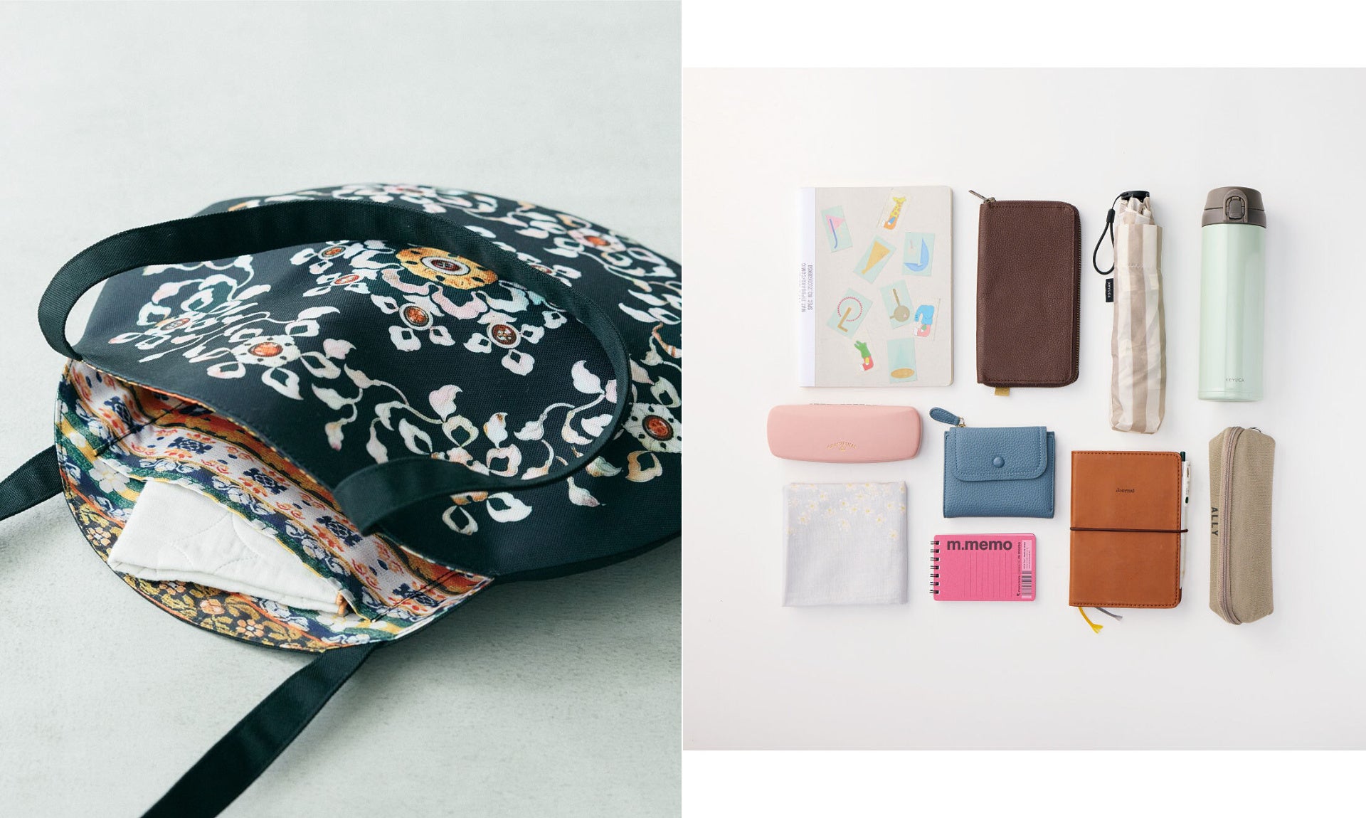 開けるたびにチラッと見える華やかな錦の柄がおしゃれです。便利なミニポケットも付いていて、デザイン性だけでなく実用性にもすぐれています。お財布やポーチ、日傘にマイボトルなど、お出かけの必需品がしっかり入る大きさです。