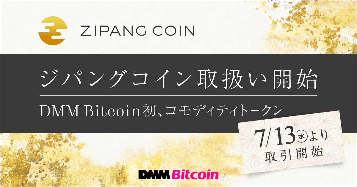 DMMグループの株式会社DMM Bitcoin(本社:東京都中央区、代表取締役社長:田口 仁、暗号資産交換業 関東財務局長 第00010号、第一種金融商品取引業 関東財務局長(金商)第3189号 https://bitcoin.dmm.com/ )は、7月13日(水)より以下のとおり現物取引及びレバレッジ取引において新たに「ジパングコイン(ZPG)」の取扱いを開始いたします。