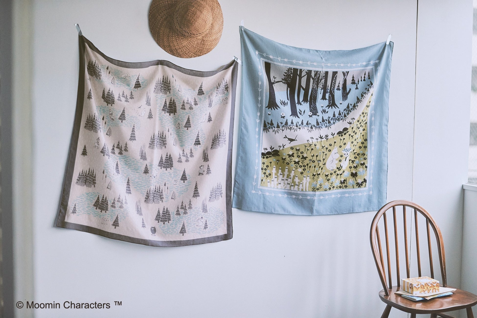 ムーミン谷の風景をテーマにして描かれたマルチガーゼクロスです。くすみ感のある上品な大人カラーが素敵なクロスは約90×90cmの大判サイズ。お部屋の目隠しやちょっとしたカバー、旅行の荷物を包む風呂敷きなど、インテリアからお出かけまで、いろいろな用途におしゃれに使えます。