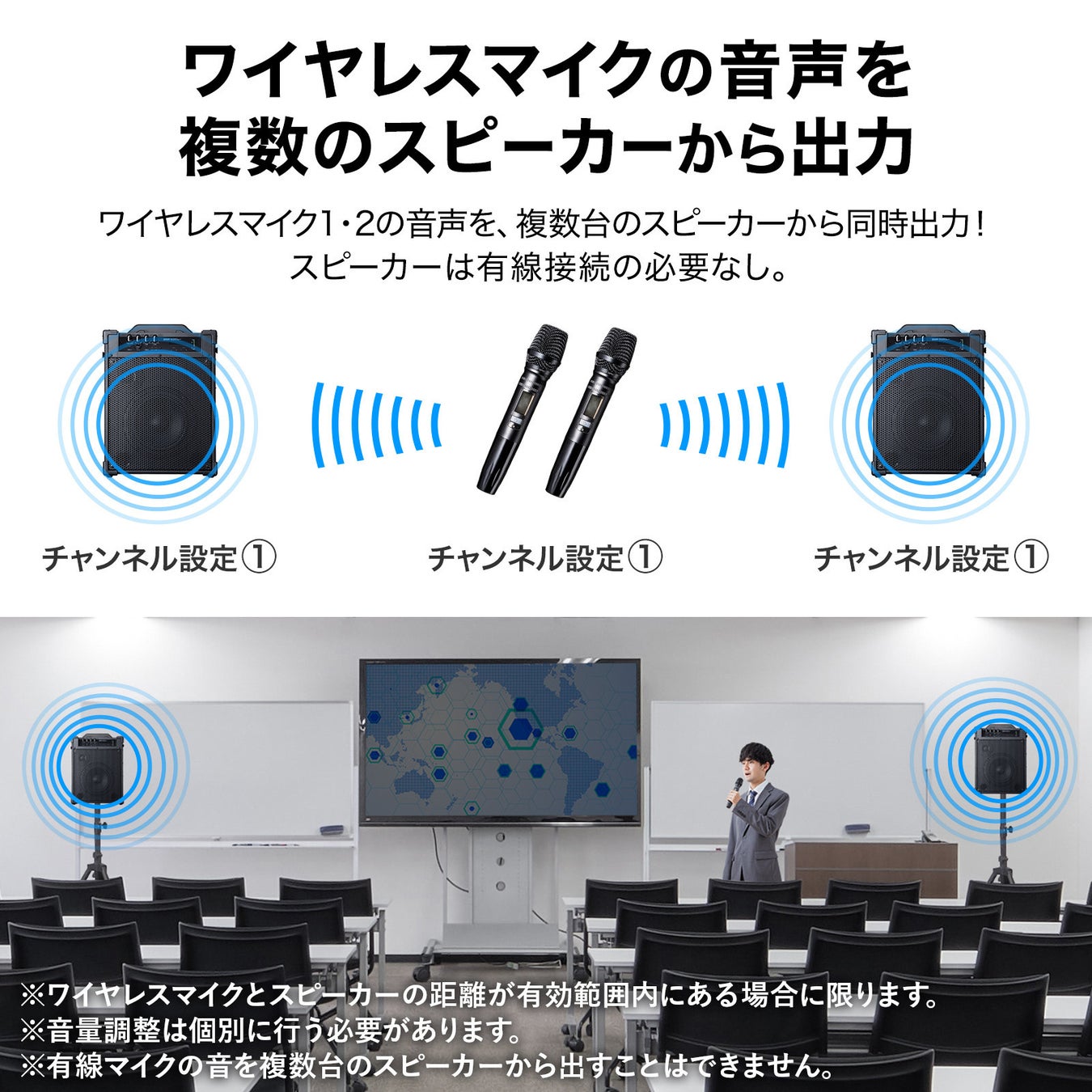 ワイヤレスマイク付き拡声器スピーカー(バッテリー内蔵・ワイヤレスマイク2本対応)