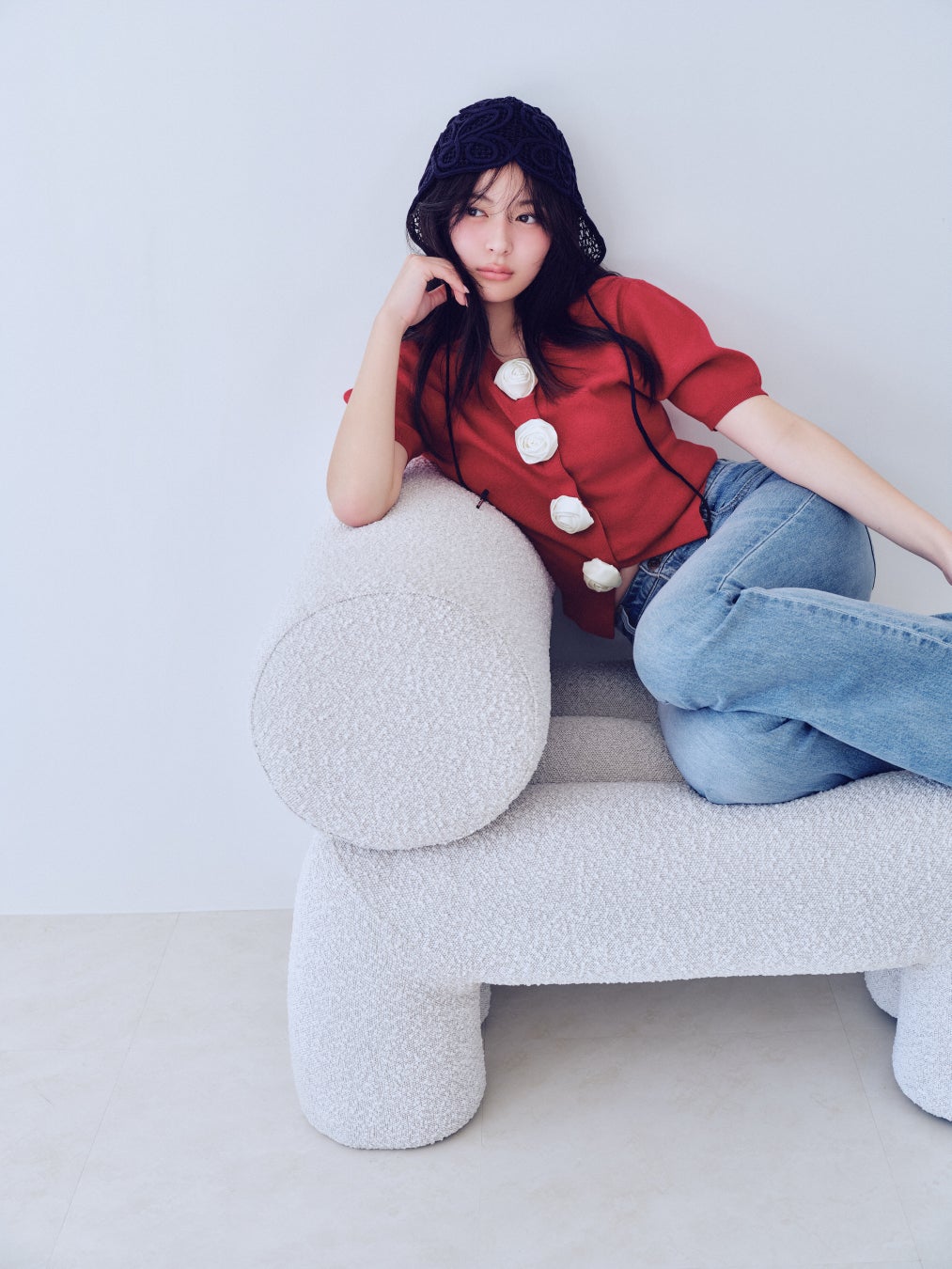 程よく肉感のあるニット素材を使用し、立体的なモチーフがより美しく映える素材感に仕上げました。