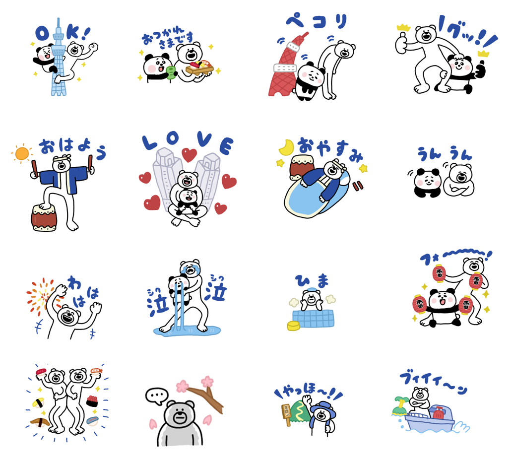 人気クリエイター“たかだべあ”さんのキャラクター「けたくま」が、東京を象徴する場所や食べ物、東京ならではのアイテムと共に登場します。みなさんが日常でよく使うメッセージを中心としたLINEスタンプになっています。