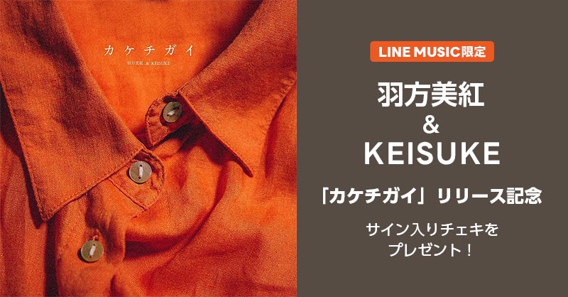 羽方美紅 & KEISUKEの新曲「カケチガイ」をLINE MUSICアプリで、期間中に再生した方の上位3名様にサイン入りチェキをプレゼント!詳細はこちらをご覧ください。