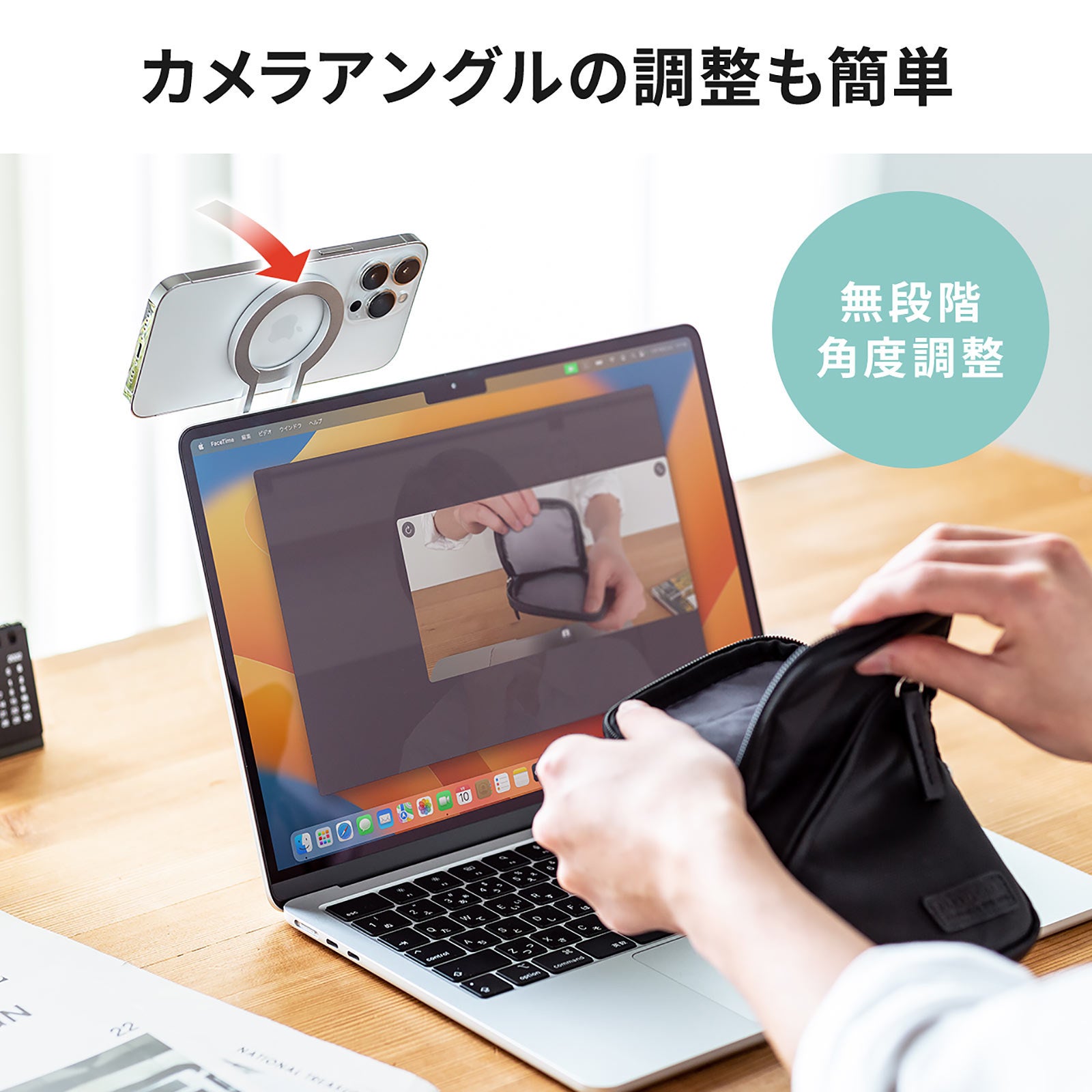 サンワサプライ株式会社(本社:岡山市北区田町1-10-1、 代表取締役社長 山田 和範)が運営している直販サイト『サンワダイレクト』では、Macの連係カメラ機能を使う際に便利な、MagSafe対応のiPhoneホルダー「200-STN073」を発売しました。