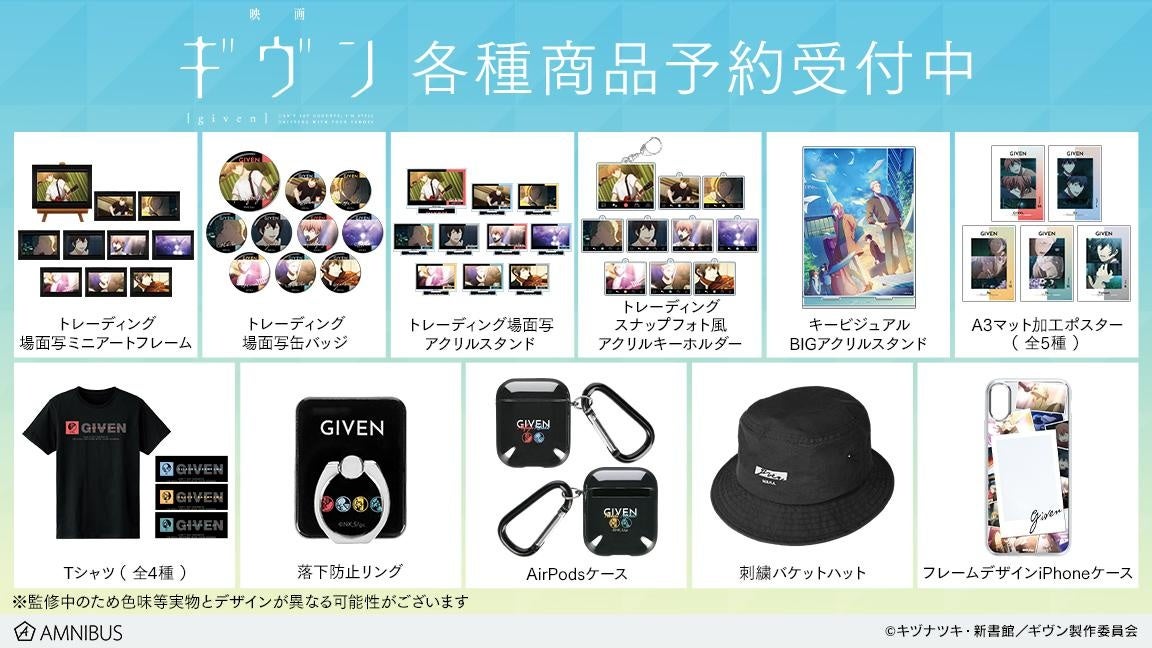 株式会社アルマビアンカはオリジナルグッズを展開する通販サイト、「AMNIBUS」にて『映画 ギヴン』の商品11種の受注を開始いたします。