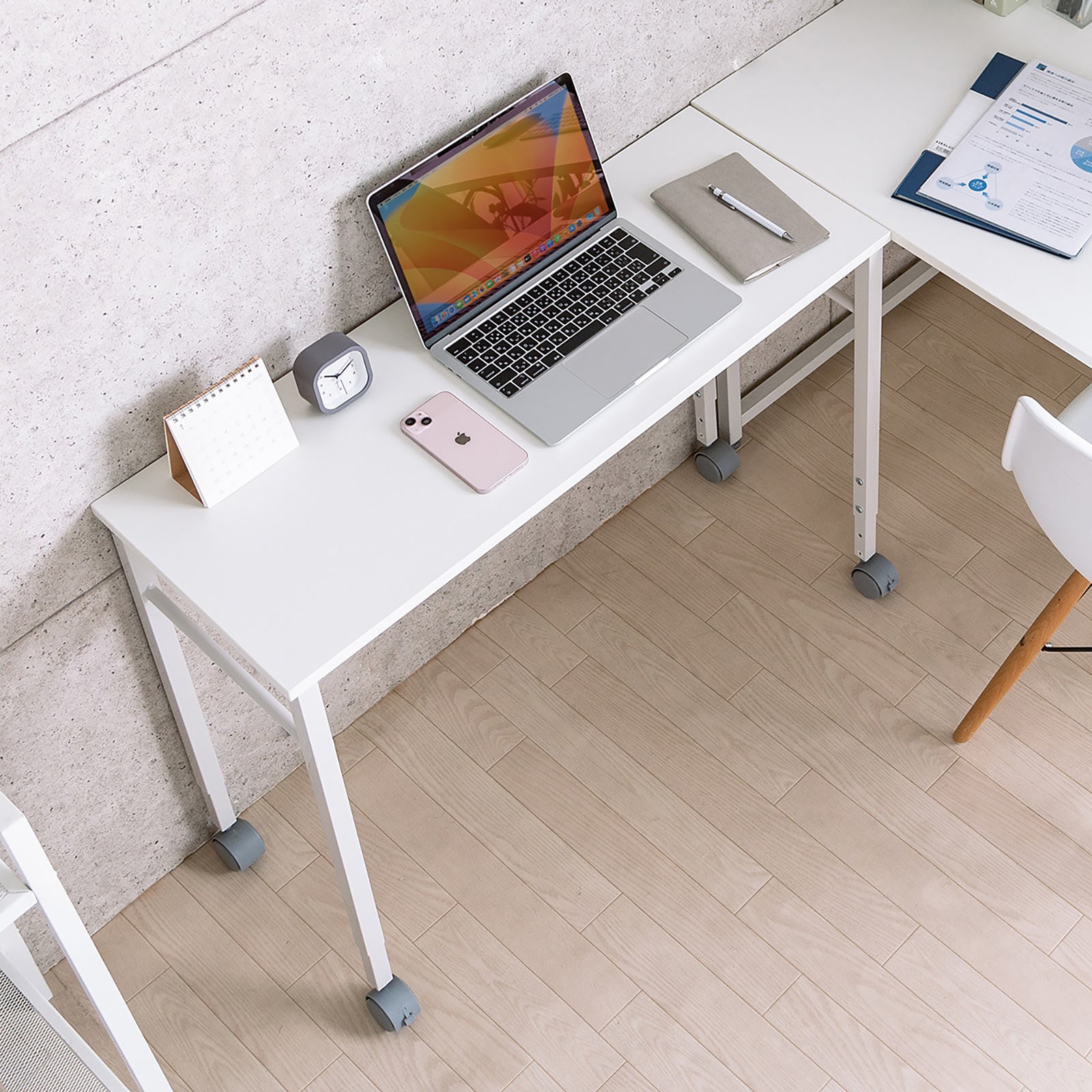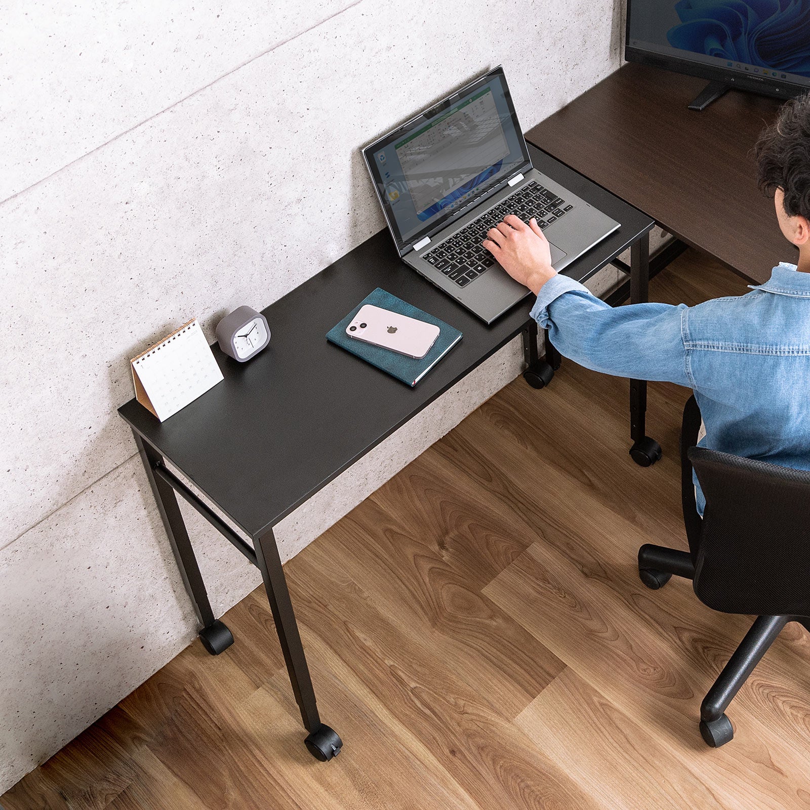 本製品は、幅90cm、奥行35cmのキャスター付きデスクです。好評販売中のブラウンに加えて、ホワイトとブラックの新色を発売します。