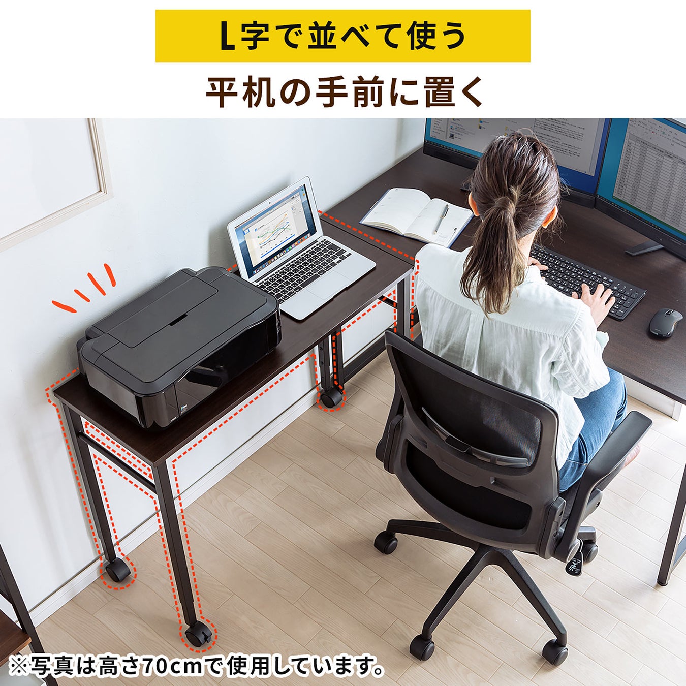 キャスター付きサブデスク 幅70cm 奥行35cm 高さ64cm/70cm