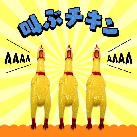 叫ぶチキンのお腹を軽く握りつぶすと、「ああー」と音がなります。