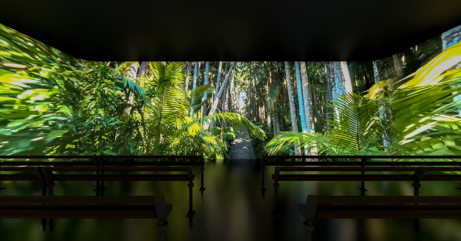 映像は慶良間諸島の海中とCAVE OKINAWA、残波岬をメインに東南植物楽園や勝連城址の情景を映した2パータンの映像を上映します。沖縄の離島での水中撮影やドローン撮影による迫力ある映像と、沖縄で収録した効果音と賑やかな音楽が一体となったサラウンド音響で、魅力あふれる沖縄の情景を体験ください。