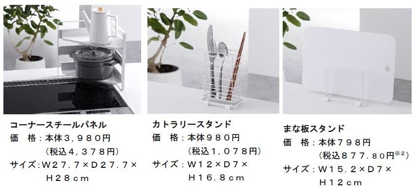 近年、“見せる収納”ニーズの増加や、効率よく料理ができるようにキッチンの使い心地を良くしたいという要望から、キッチン整理商品の需要は増えています。こうしたなかイオンは、スチールパネルにフックやマグネットでシェルフやラックをつける収納と、包丁まな板スタンドなどのスタンドタイプを、「組み合わせられるキッチン収納」として新たに企画・開発しました。