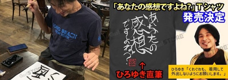- ひろゆき「あなたの感想ですよね?」直筆 Tシャツ WHITE/SUMI(S/M/L/XL)各3,190 円(税込)