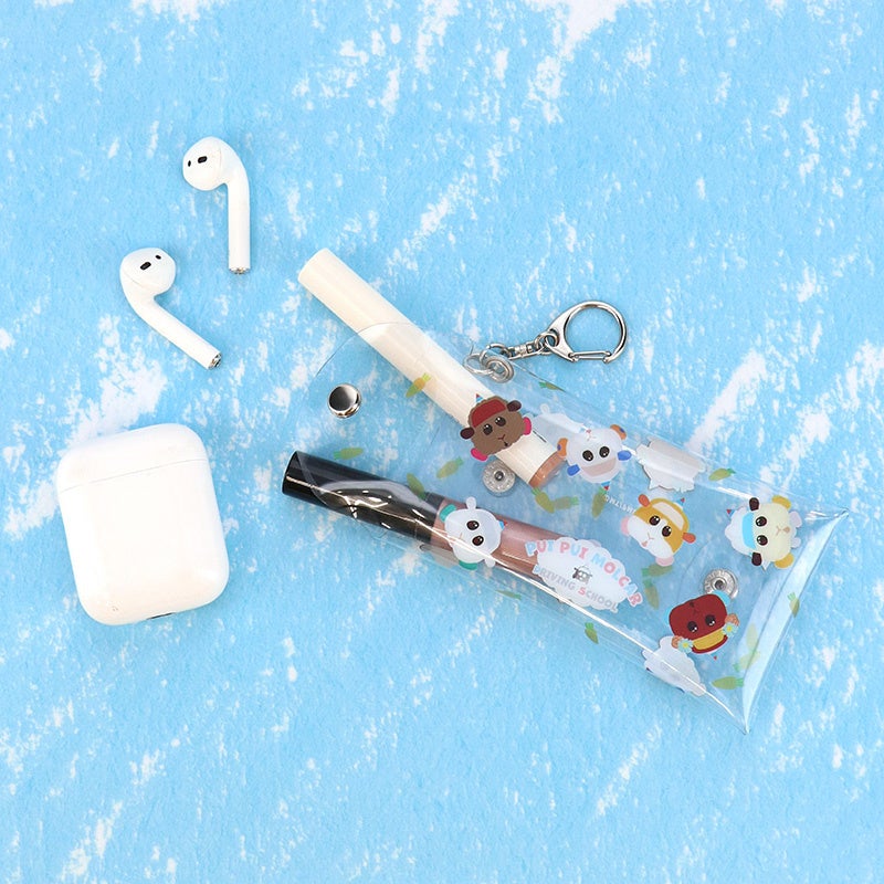 透明ビニール素材にキャラクターをプリントした透け感のあるポーチです。