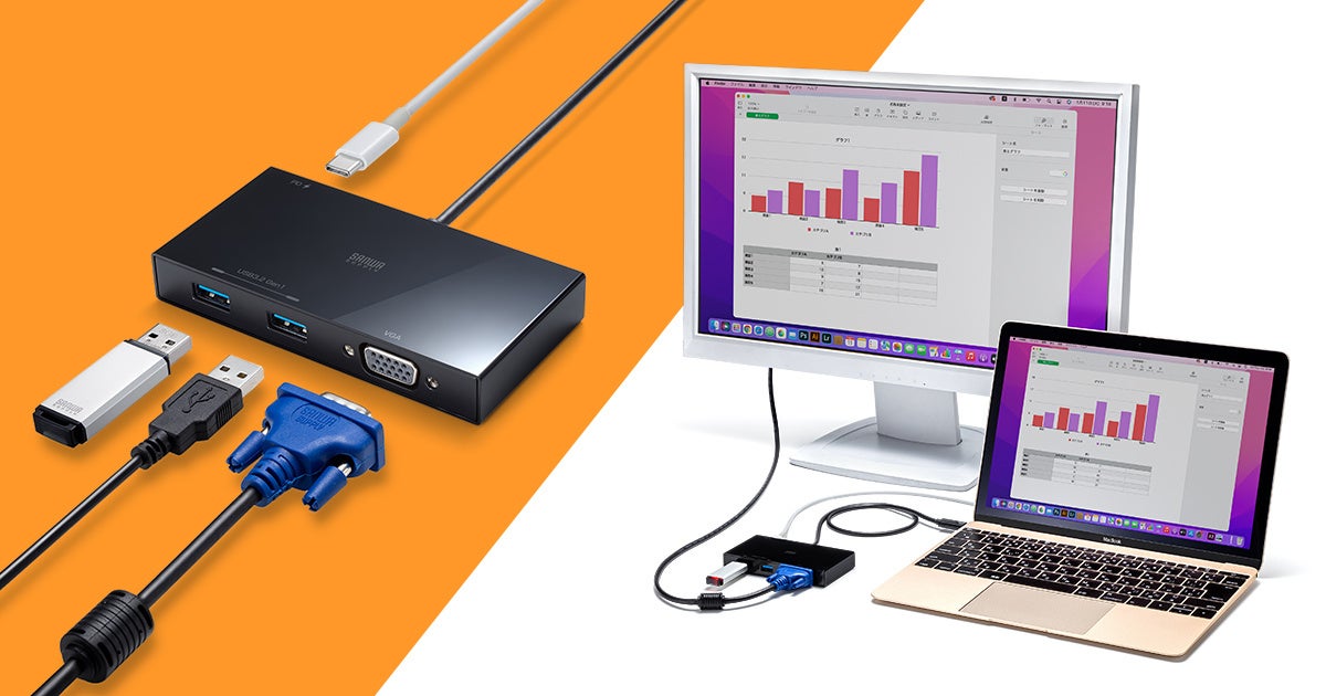 VGA端子を搭載したディスプレイとUSB機器への接続が同時にできるUSB Type-Cハブを発売