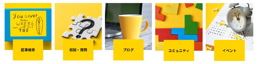 サイトには、情報を得るための記事やブログ、コミュニティといったページのほか、専門家やパートナー企業に相談・質問できるページも用意しています。