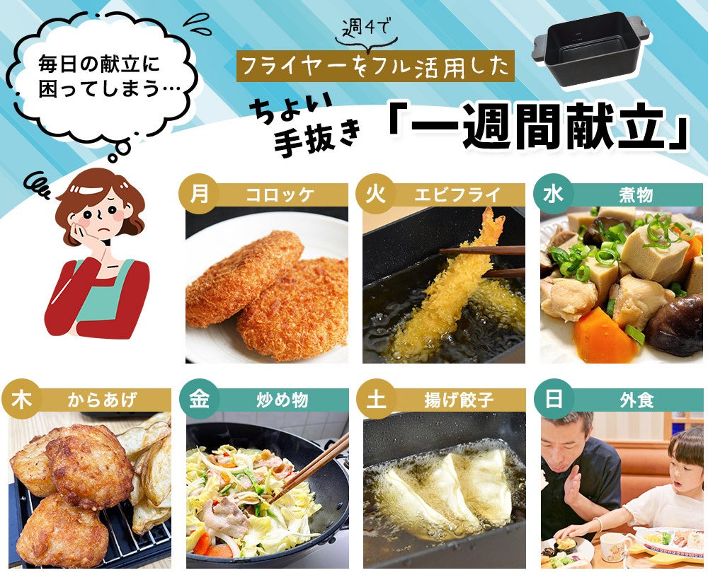 サンコー株式会社より、卓上に置けて目の前で揚げ物が出来る、おひとりさま用フライヤー「カラリ」が新登場!