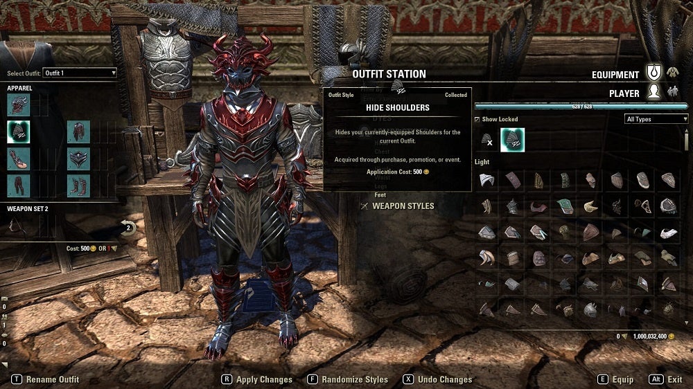 また、アップデート第37弾の一部として、プレイヤーキャラクターが現在着用しているあらゆる肩防具を隠すことができる、新しい外見コレクションが登場します。兜の非表示と同様、このオプションは服飾台で外見をカスタマイズする際に利用可能です。鎧スタイルから肩防具を選択し、「肩の非表示」の「スタイル(style)」を選択してください。