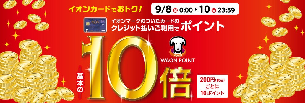 また、週末にイオンカードでお支払いいただくと、WAON POINTが基本の10倍※1となります。