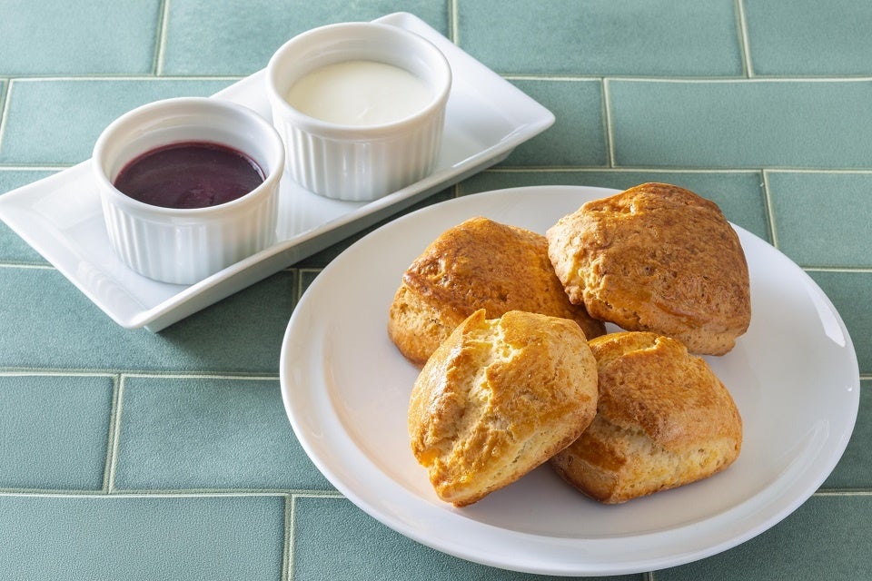 【スコーン】プレーンスコーン、 紅茶スコーン、クロテッドクリーム、ミックスベリージャム