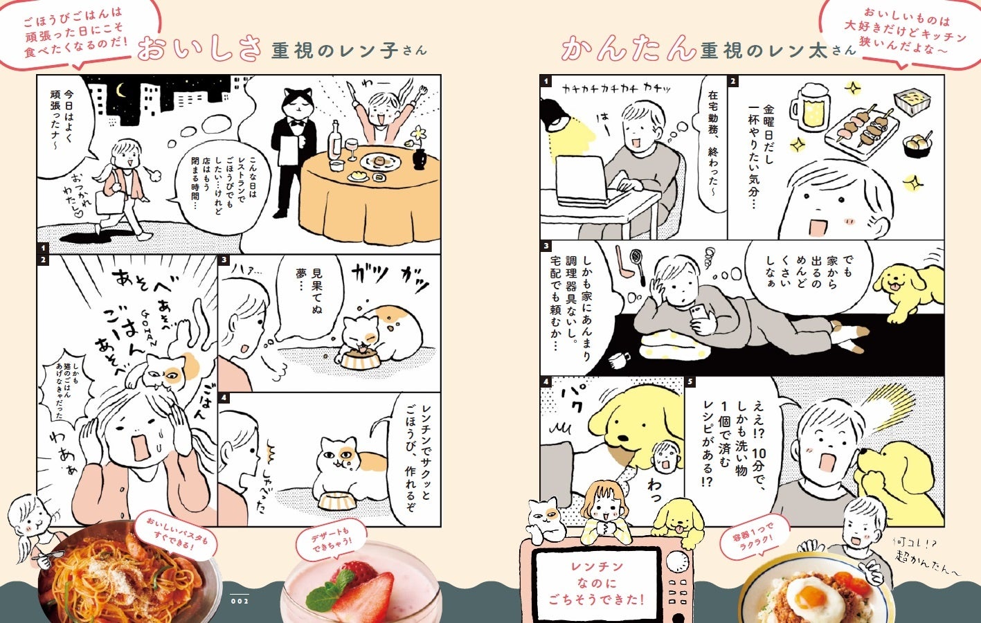 そんなひとり暮らしのお悩みあるあるを解決するのが、『レンチン!ごほうびひとりごはん』。せっかくのごはんだし、おいしいものを食べたいという気持ちはもちろん、「私は毎日こんなに頑張っているのだから、ごほうびが必要だ!」とお思いのそこのあなたにぴったりのテンションが上がる「ごほうび」感たっぷりのメニューを取りそろえています。