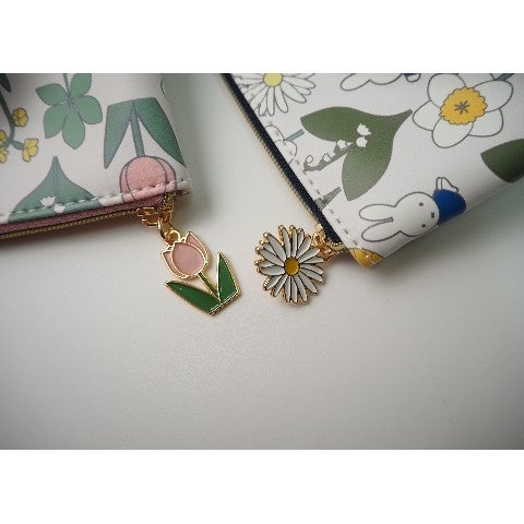 先ほどのティッシュポーチと台形ポーチのチャームはお花の形になっています。