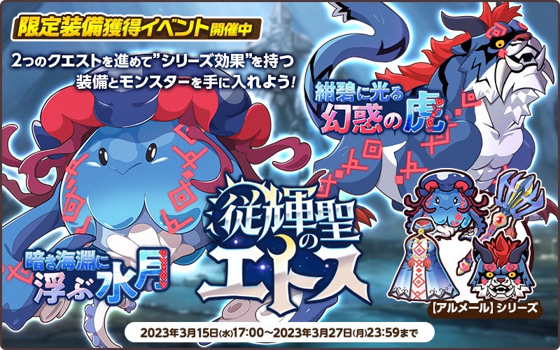 本イベントで獲得できるモンスターと装備品は「アルメール」シリーズ効果を持っております。