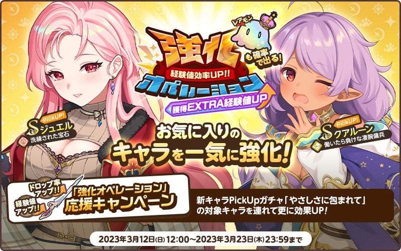 開催中のイベント「強化オペレーション」で編成すると、アイテムドロップ率とキャラクターの獲得経験値がUPします。