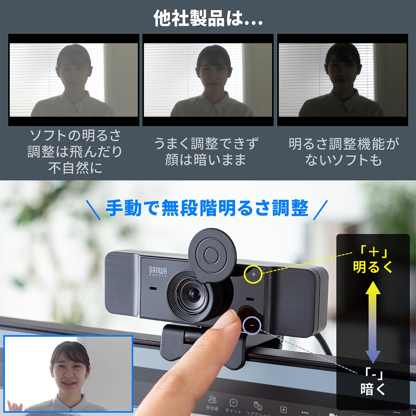 サンワサプライ株式会社(本社:岡山市北区田町1-10-1、 代表取締役社長 山田 和範)が運営している直販サイト『サンワダイレクト』では、逆光でも顔を明るく撮れる明るさ調整ボタンを本体に搭載し、マイク内蔵でWEB会議などでも使用可能なWEBカメラ「400-CAM105」を発売しました。