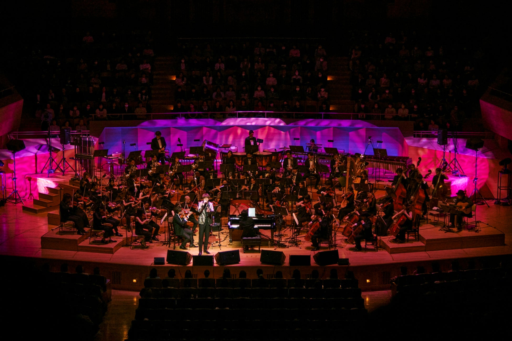 このほかにも、ポップスからディズニーの楽曲、ミュージカル曲、オリジナル楽曲と多彩なラインナップで魅せた城⽥。⼤阪公演は10⽉30⽇(⽔)にフェスティバルホールで開催される。