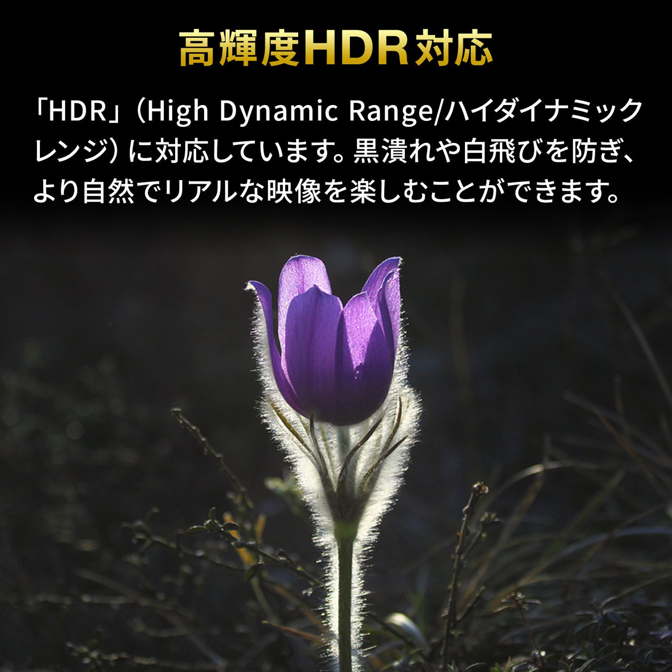 - 高精細な映像を楽しめる4K/60Hz 高輝度HDR対応