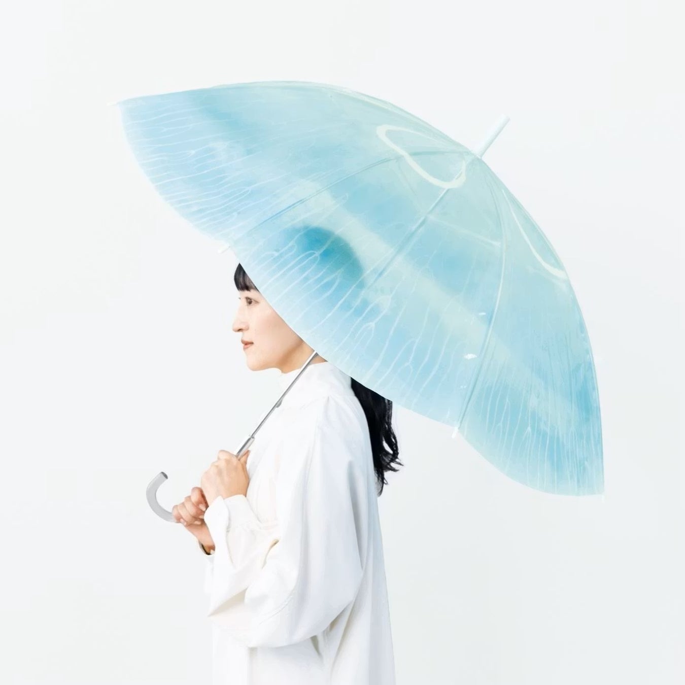 日本でのシリーズ累計販売数17万本を誇る「クラゲ傘」の人気は海外にも波及。グローバルサイトの訪問者数最多国である台湾のお客さまからは「ユニークなデザイン」「秀逸なクリエイティブで魅力的」「デザインセンスがすばらしい」などの声をいただいています。クラゲ展示種類世界一を誇る、山形県の加茂水族館とのコラボ商品で、透明傘の透け感を利用し、クラゲの持つ雰囲気そのままにデザインしたほか、ミズクラゲの水管の美しい並びや、傘のつゆ先を感覚器に見立てるなどクラゲ飼育員さんの細かなこだわりがあふれています。