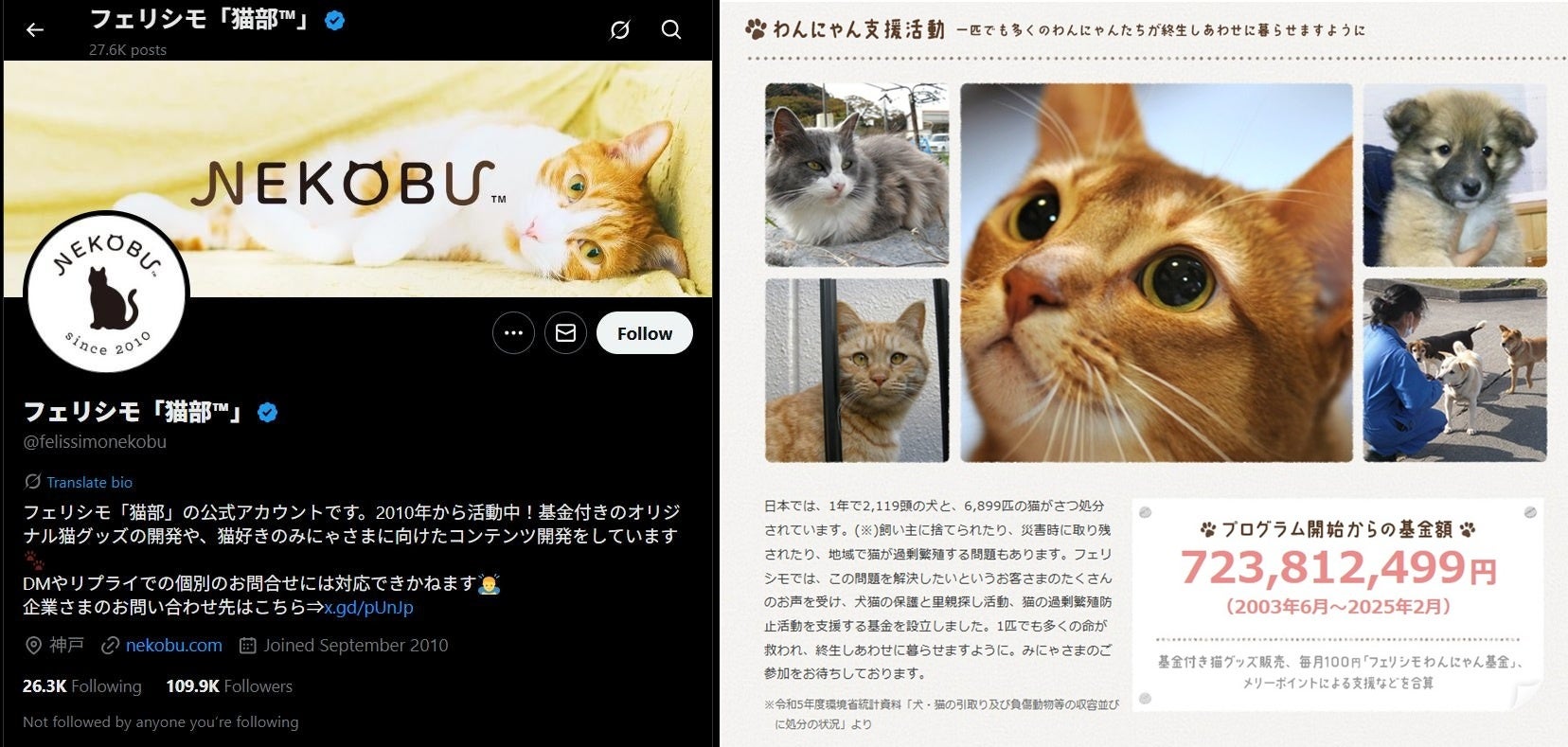 フェリシモ「猫部」は猫好きの生活者とSNSなどのコミュニティーでコミュニケーションしています。商品には犬猫の保護と里親探し活動、猫の過剰繁殖防止活動を支援する基金がついており、社会とともに「猫と人がともにしあわせに暮らせる社会」を目指しています。